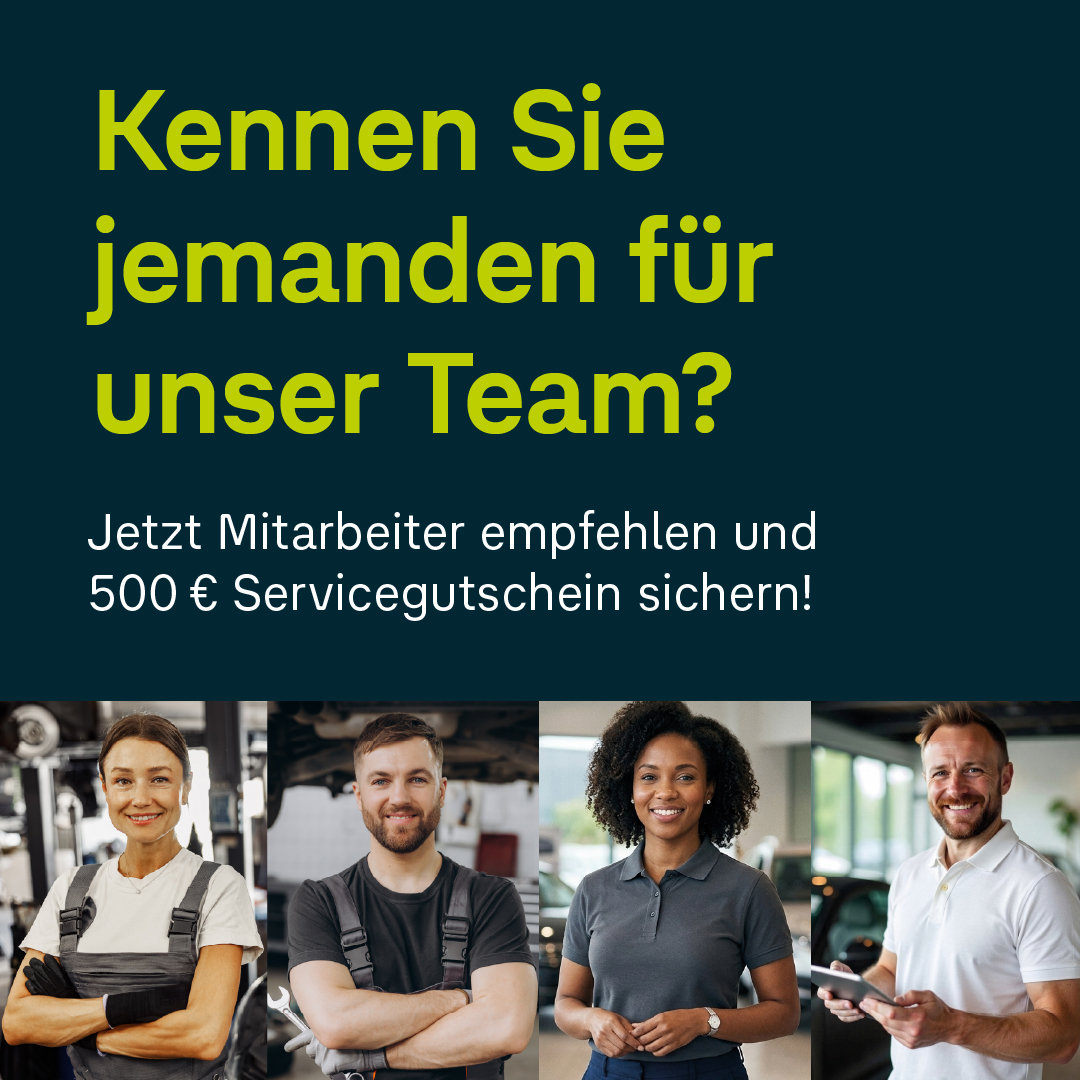 Als besonderes Dankeschön für die erfolgreiche Vermittlung erhält der empfehlende Kunde nach bestandener Probezeit einen attraktiven Servicegutschein im Wert von 500 € – als Anerkennung für sein Vertrauen und seine Unterstützung.